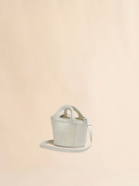 Micro size, Tropicalia bag made in leather with weaved fabric panels. Hand carry and cross body. Handles with details on relief. Leather bottom. Detachable Leather shoulder strap. Fabric lining. Leather closure. Gold Hardware. Embroidered logo outside on front. Made in Italy MODEL BMMP0067Q0P386000W12 COMPOSITION Body: 52% Cotton 48% Polyamide-Nylon - Contrast: 100% Calf Leather - Lining: 100% Cotton - Metallic Parts: 100% Brass - Metallic Parts: 94% Zinc 4% Aluminium 2% Copper