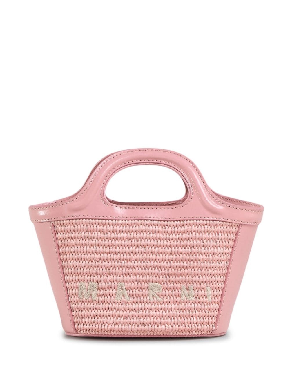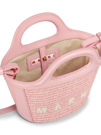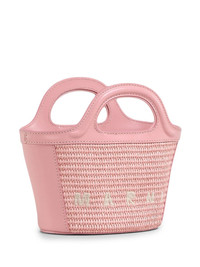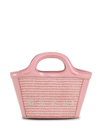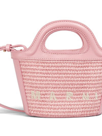 Tropicalia Micro bag Highlights - Rose pink - Cotton blend/leather/cotton - Interwoven design - Embroidered logo to the front - Tonal stitching - Gold-tone hardware - Hook and eye fastening - Adjustable detachable shoulder strap - Two flat top handles - Main compartment - Internal logo patch - Cotton lining Composition Outer: Cotton 52%, Polyamide 48% Lining: Cotton 100% SIZE & FIT Measurement DEPTH 3.9 in(10 cm) HEIGHT 7.1 in(18 cm) WIDTH 8.7 in(22 cm)