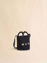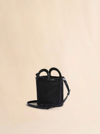 TROPICALIA MINI BUCKET BAG IN BLACK LEATHER AND RAFFIA