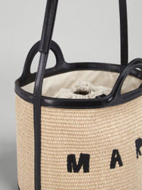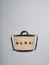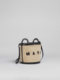 TROPICALIA SMALL BUCKET BAG IN BLACK LEATHER AND RAFFIA