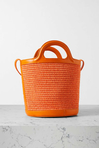 Tropicalia small leather-trimmed embroidered raffia bucket bag