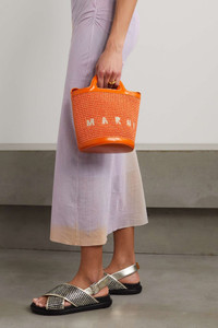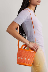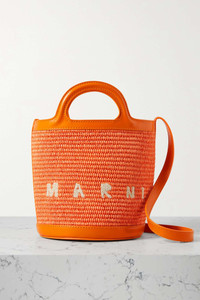 EDITORS'NOTES Marni's small Tropicalia bucket bag is embroidered with the label's logo across the front - a detail loyalists will love. It's been woven in Italy from 'Carrot' raffia and trimmed with tonal leather to outline the boxy shape. Carry yours by the top handle or shoulder strap. SIZE & FIT This item’s measurements are: - Min. Strap Length: 105cm / 41.3in - Handle Drop: 6cm / 2.4in - Depth: 9cm / 3.5in - Max. Strap Length: 120cm / 47.2in - Height: 18cm / 7.1in - Width: 24cm / 9.4in DETAILS & CARE - Orange raffia and leather (Calf) - Drawstring fastening at open top - Designer color: Carrot - Weighs approximately 2.4lbs/ 1.1kg