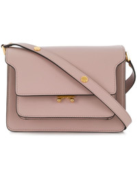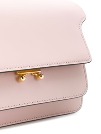 Calfskin Shoulder Bag by Marni, front closure by push-lock, removable and adjustable shoulder strap in contrasting logoed webing, iconic brand signature press-stamped on front, two interior compartments, one zippered pocket, back welt pocket. DETAILS sku SBMP0103Q5P2644_00C09 composition : CALF LEATHER BOS TAURUS 100% color group : PINK gender : WOMAN season : AW23 size chart : WOMAN UNI category name : SHOULDER BAGS dimensions :