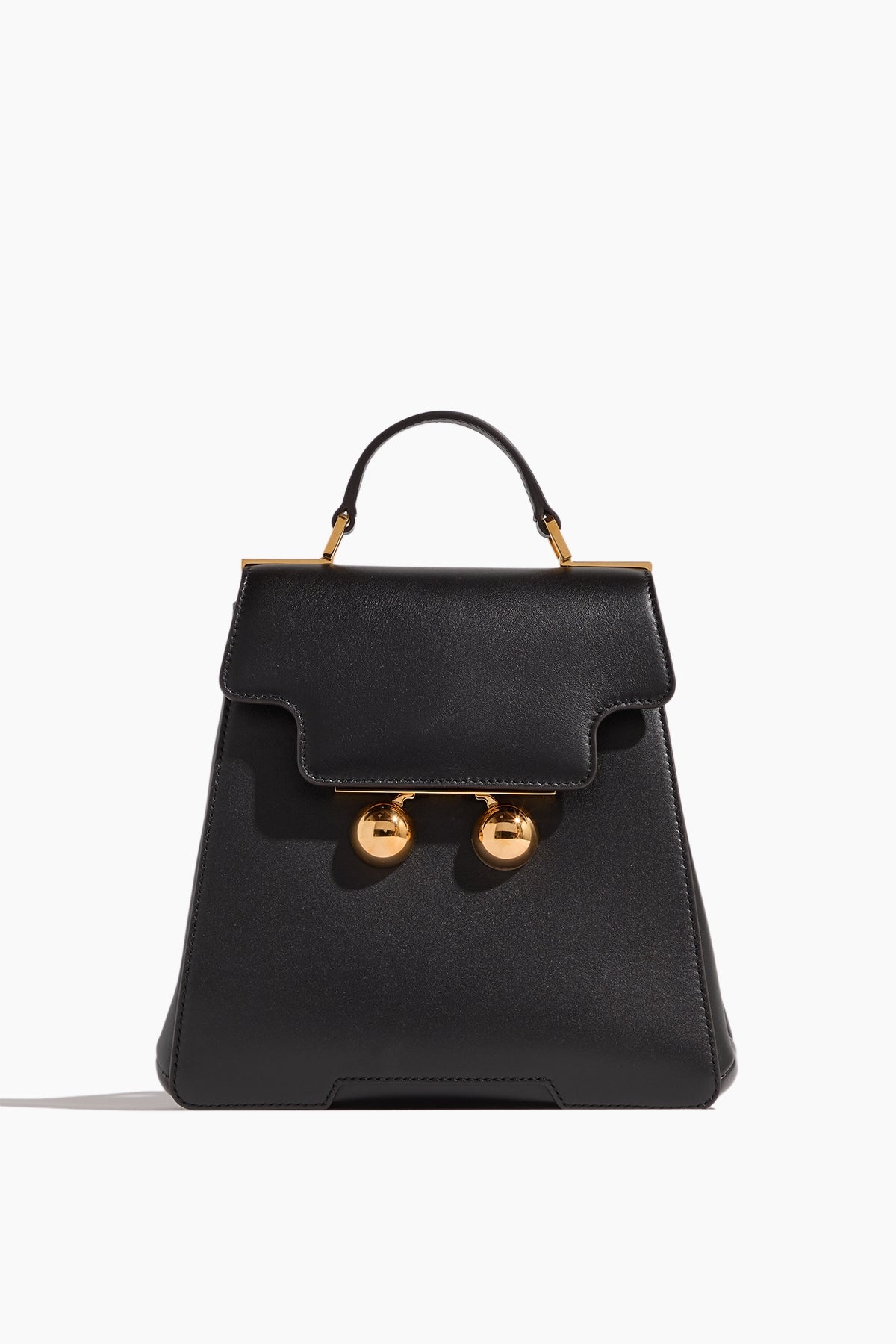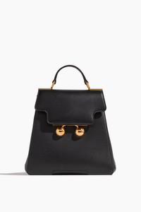 The Marni Trunkaroo Backpack is a do it all addition to your wardrobe. This backpack can also function as a handbag with their signature styling and oversized clasp. FIT DETAILS - Backpack - Flap closure - Adjustable straps - Top handle - Gold toned hardware - 100% Calf leather