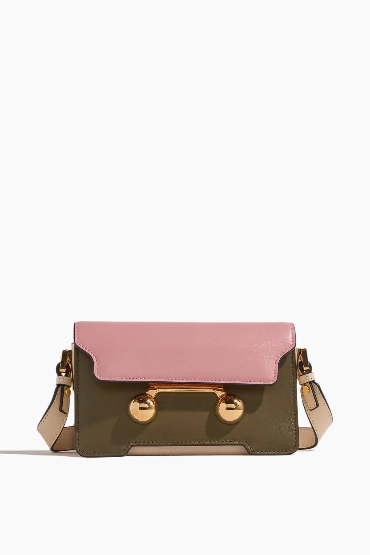 The Marni Trunkaroo Mini Shoulder Bag features their signature silhouette. You'll love the flap closure at classic trunkaroo clasp of this mini shoulder bag. FIT DETAILS - Shoulder bag - Flap closure - Magnetic closure - Adjustable strap - 100% Calf Leather