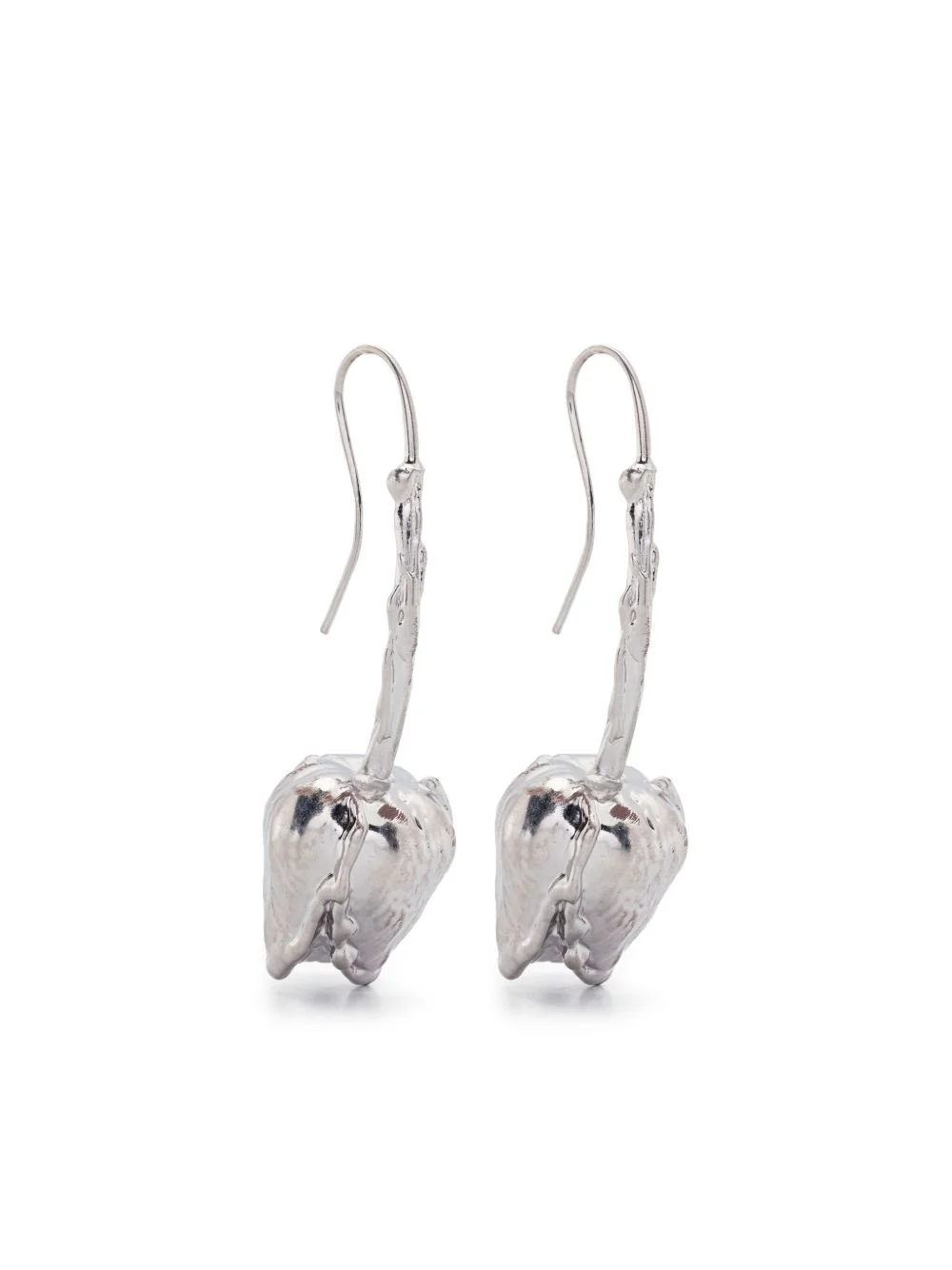 tulip drop earrings Highlights - Silver-tone - Tulip motif - Textured finish - Hook fastening - These earrings come as a pair. - Normal everyday use and external agents may reduce the lustre of gemstones and gold surfaces. to maintain, use specific, non-abrasive products specially meant for cleaning jewellery. Imported SIZE & FIT Model measurements Height 5 ft 9 in(1.75 m) Bust/Chest 32.67 in(83 cm) Hips 36.22 in(92 cm) Waist 24.8 in(63 cm) Measurement HEIGHT 2.91 in(7.4 cm) Weight (single earring) 8 g(8 g) WIDTH 0.9 in(2.3 cm)