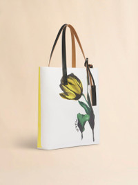 WHITE AND YELLOW FABRIC TRIBECA TOTE WITH TULIP PRINT