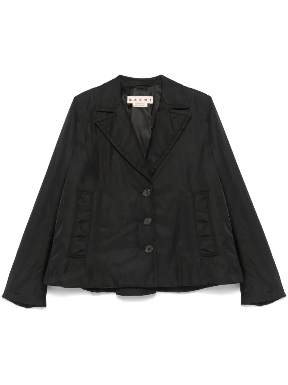 padded blazer Highlights - Black - Padded design - Front button fastening - Notched lapels - Embroidered logo to the shoulder - Long sleeves - Two side welt pockets - Pleat detailing to the rear - Satin lining - Straight hem Made in Italy Composition Lining: Polyester 100%, Viscose 100%, Cotton 100% Outer: Polyamide 100% SIZE & FIT Model measurements Height 5 ft 10 in(1.78 m) Bust/Chest 33.85 in(86 cm) Hips 36.61 in(93 cm) Waist 26.77 in(68 cm) Measurement Shoulder Width 16.14 in(41 cm) SLEEVE LENGTH 25.19 in(64 cm) LENGTH 24.01 in(61 cm) WAIST 51.18 in(130 cm) BUST 39.37 in(100 cm) FittingInformation Designed for a relaxed fit, this piece allows for comfort and movement when worn Made from a midweight non-stretch fabric Washing instructions Dry Clean Only