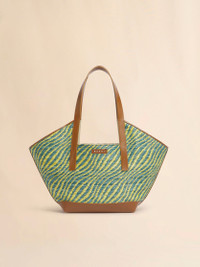 GREEN RAFFIA-EFFECT WAVES SMALL TOTE BAG
