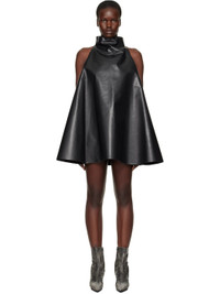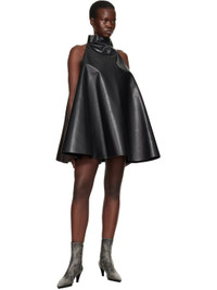 Buffed faux-leather and nylon satin minidress. · Paneled construction · Mock neck · Hand-stitched logo at armscye · Zip closure at back · Partially lined Supplier color: Moca