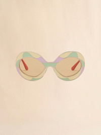 Land of Revelations sunglasses, crafted from sleek metal. Mosaic front with multicoloured enamel finish. Sculpted temples with graphic curved lines, featuring engraved Marni lettering and contrast end tips. Made in Italy MODEL EWME0083M0H390001RCS COMPOSITION Material: 70% Metal 10% Acetate 20% Resin