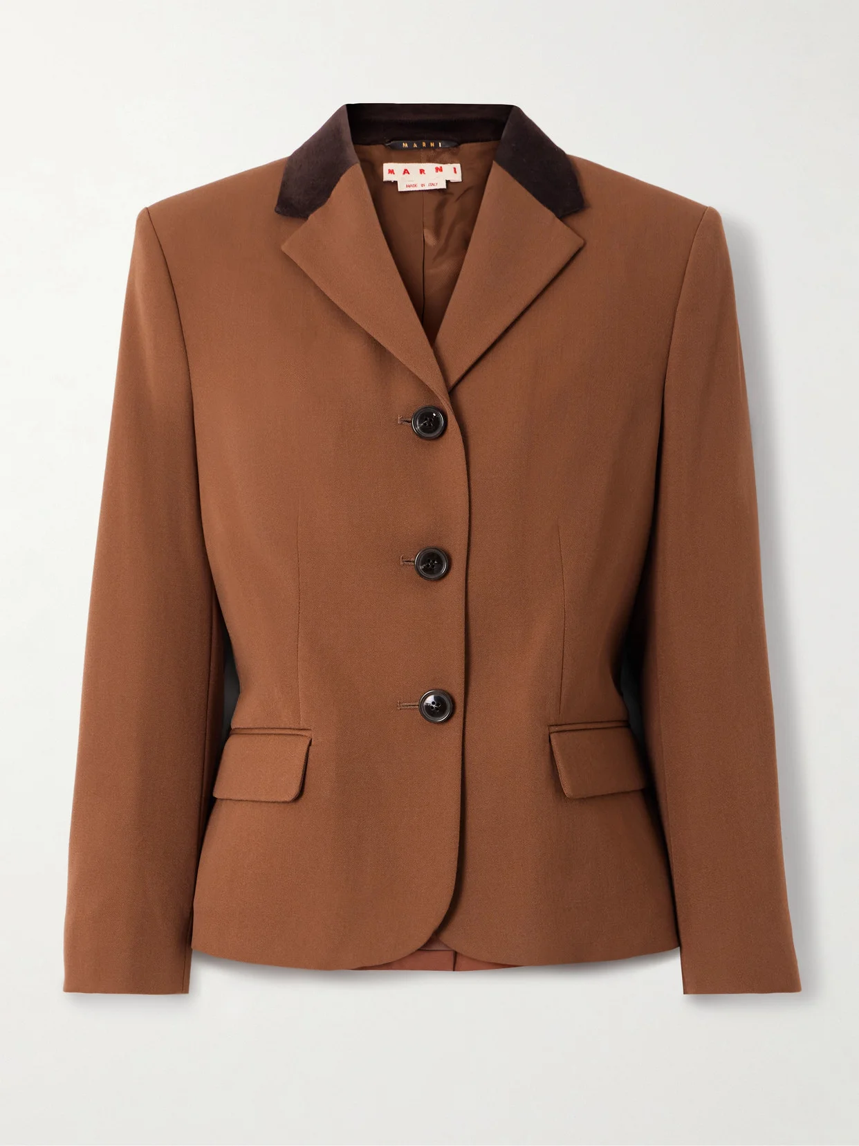 Velvet-trimmed Embroidered Grain De Poudre Wool Blazer