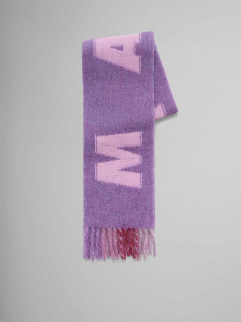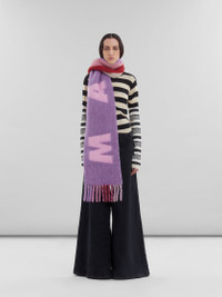 PURPLE MOHAIR AND WOOL SCARF WITH MAXI LOGO