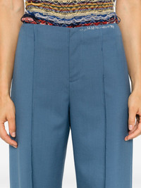 virgin wool trousers Highlights - Sapphire blue - Virgin wool - Tailored design - Concealed front button, hook and zip fastening - Seam detailing - Two rear welt pockets - Straight hem - Wide leg Made in Italy Composition Lining: Viscose 100% Outer: Virgin Wool 100% SIZE & FIT Model measurements Height 5 ft 11 in(1.8 m) Bust/Chest 33.07 in(84 cm) Hips 37.4 in(95 cm) Waist 25.19 in(64 cm) FittingInformation Designed with a wide-leg cut, these trousers allow for a close fit at the waist and offer a loose and roomy fit over the leg Made from a midweight non-stretch fabric