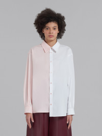 Two-tone shirt made from bio cotton poplin. Patchwork design, with an asymmetric hem and ripped opening on the back. Relaxed fit with classic collar and darts on the sleeves. DETAILS FIT The model is 5'9.5''. The model is wearing size 40 IT. COMPOSITION Primary Fabric: 100% Cotton Woven - Secondary Fabric: 100% Cotton Woven