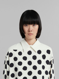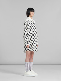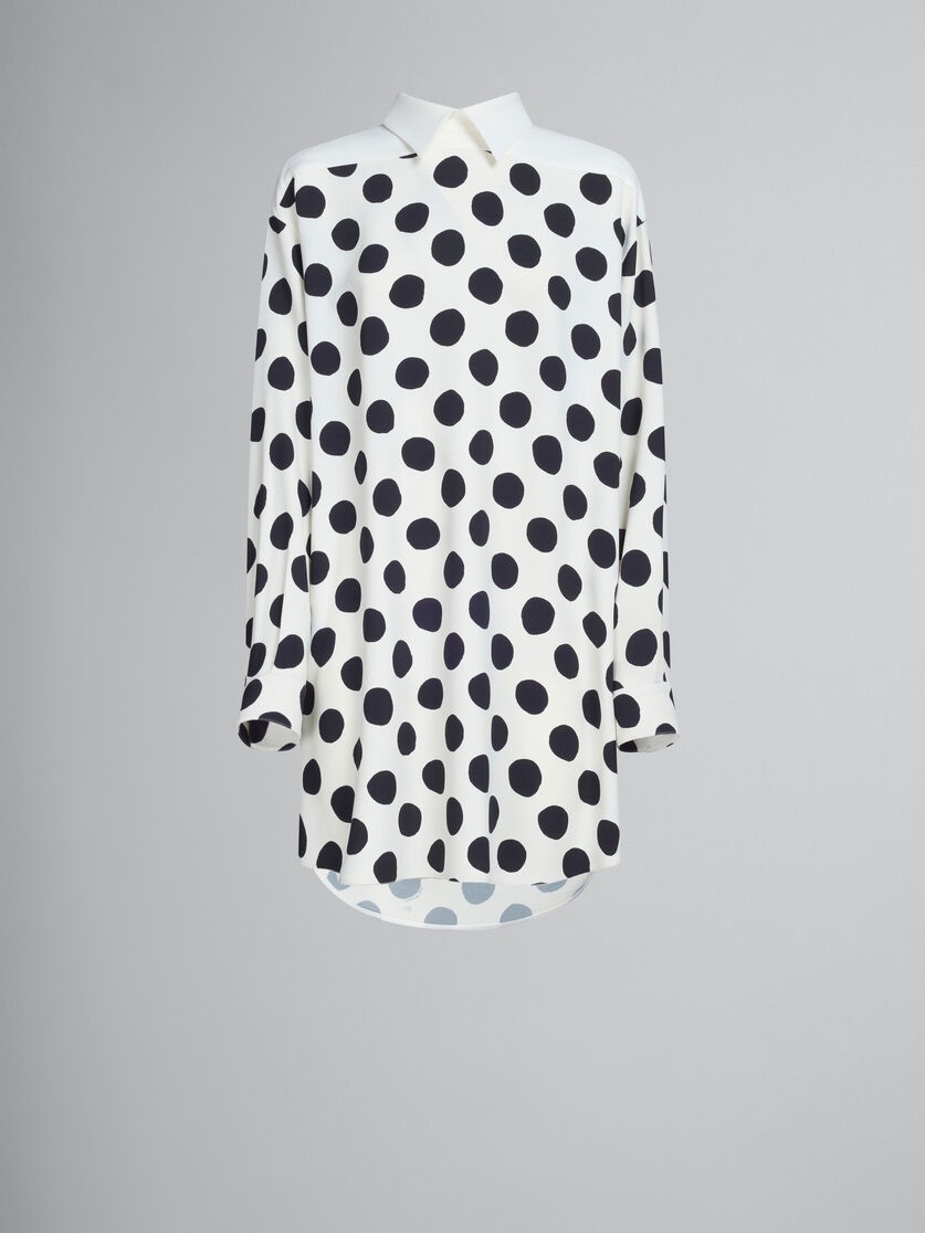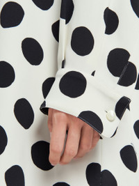 Stretch cady dress with maxi polka dots. Relaxed shirt silhouette, collar and rear button placket. Long sleeves and buttoned cuffs. Rounded lower back hem. Made in Italy. DETAILS FIT The model is 5' 11''. The model is wearing size 40 IT. COMPOSITION Primary Fabric: 96% Viscose-Rayon Woven 4% Elastan Woven - Secondary Fabric: 97% Viscose-Rayon Woven 3% Elastan Woven