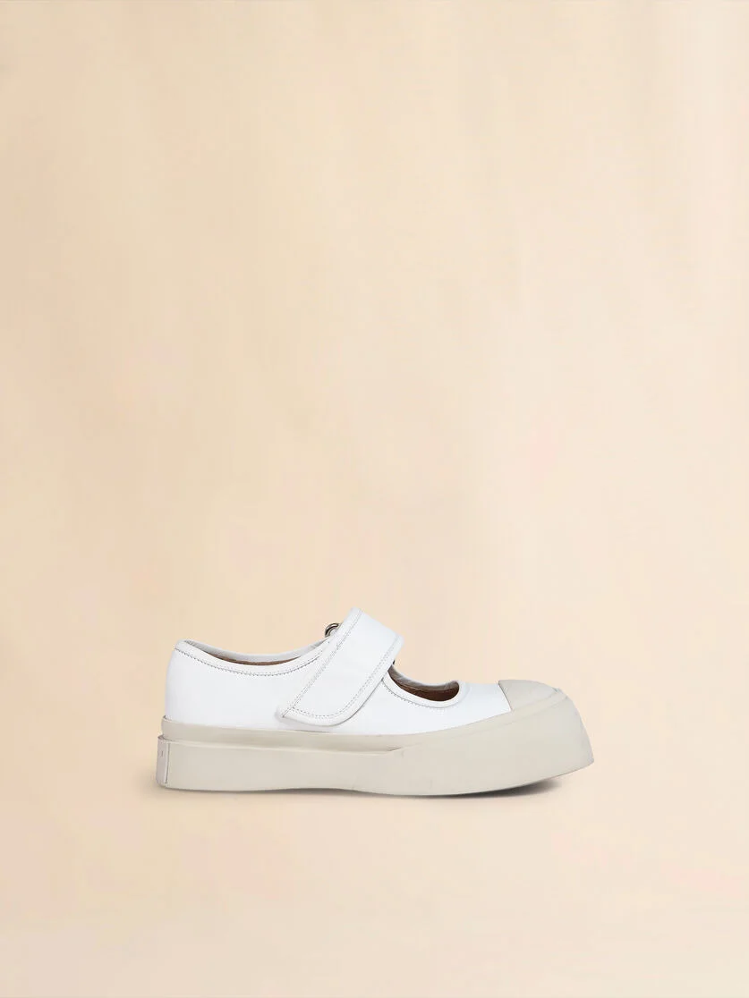 Pablo Mary Jane sneaker in nappa leather with strap. Leather lining. Soft leather insole. Chunky platform sole in rubber with Marni logo on the back. Made in Italy MODEL SNZW003120P272200W01 COMPOSITION Upper: 100% Calf Leather - Lining: 100% Ovine Leather - Inside: 100% Ovine Leather - Sole: 100% Rubber CARE INSTRUCTION Do not wash. Do not bleach. Do not iron. Do not dry clean. Do not tumble dry. Do not professionally wet clean.