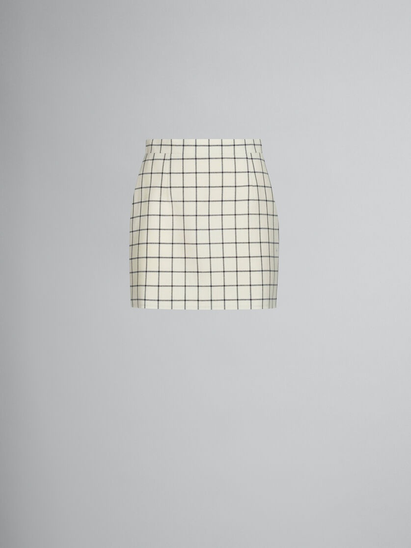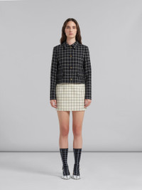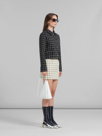 WHITE CHECKED WOOL MINI SKIRT