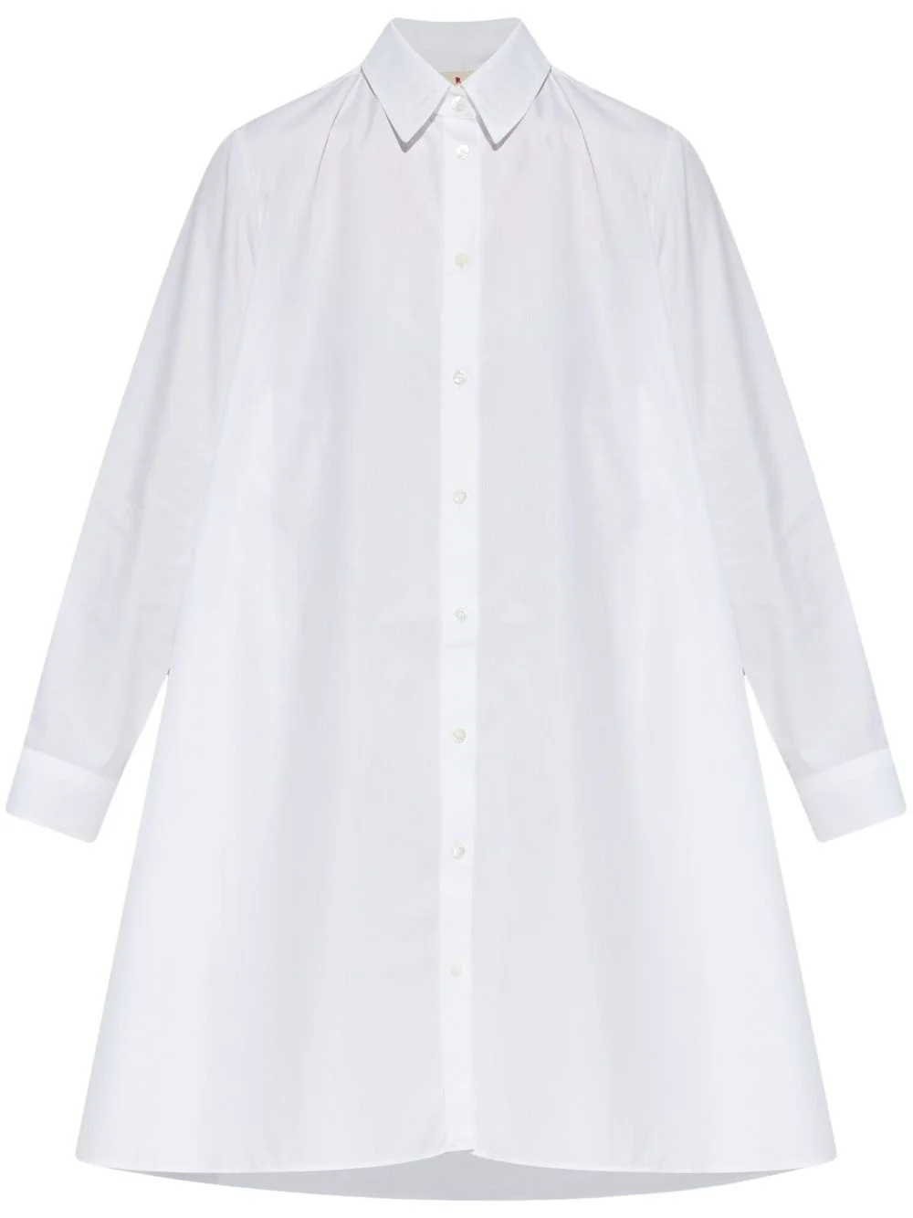 logo-embroidered shirt dress Highlights - White - Front button fastening - Buttoned cuffs - Pleat detailing - Long sleeves Imported Composition Cotton 100%