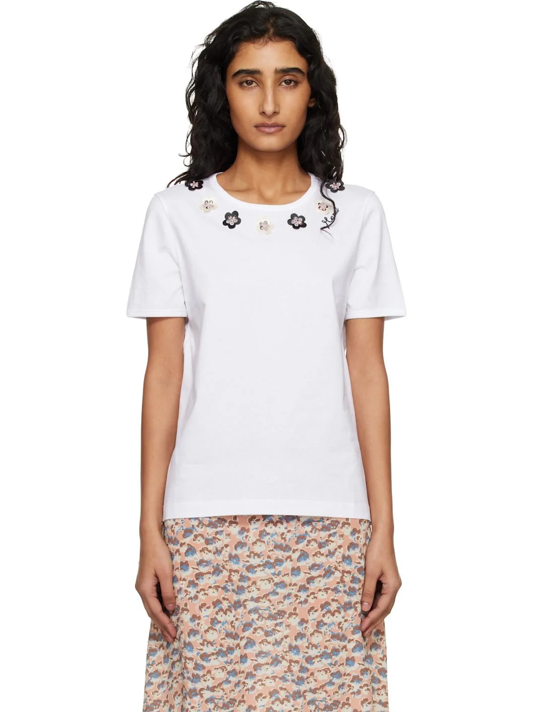 Cotton jersey T-shirt. · Rib-knit crewneck · Floral appliques and embroidered logo at collar Supplier color: Lily white 100% cotton. Made in Portugal 261379F110000