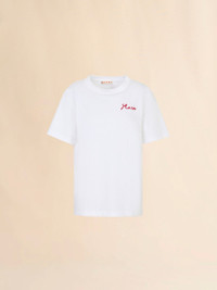 WHITE COTTON T-SHIRT WITH FLOCKED MARNI LOGO