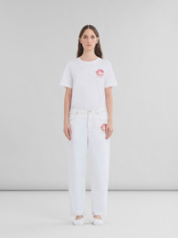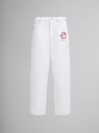 WHITE DENIM TROUSERS WITH FLOWER PATCH