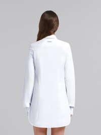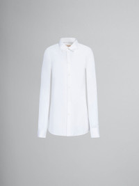 Compact cotton poplin shirt. Slim-fitting silhouette with darts, styled with balloon sleeves and a lower rounded back hem. Unstitched at the back collar, embroidered with Marni lettering. Made in Italy. DETAILS FIT The model is 5' 11''. The model is wearing size 40 IT. COMPOSITION Primary Fabric: 100% Cotton Woven