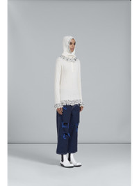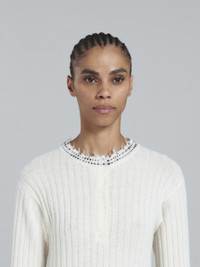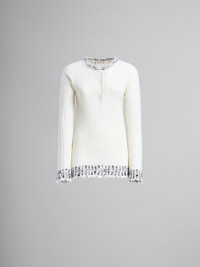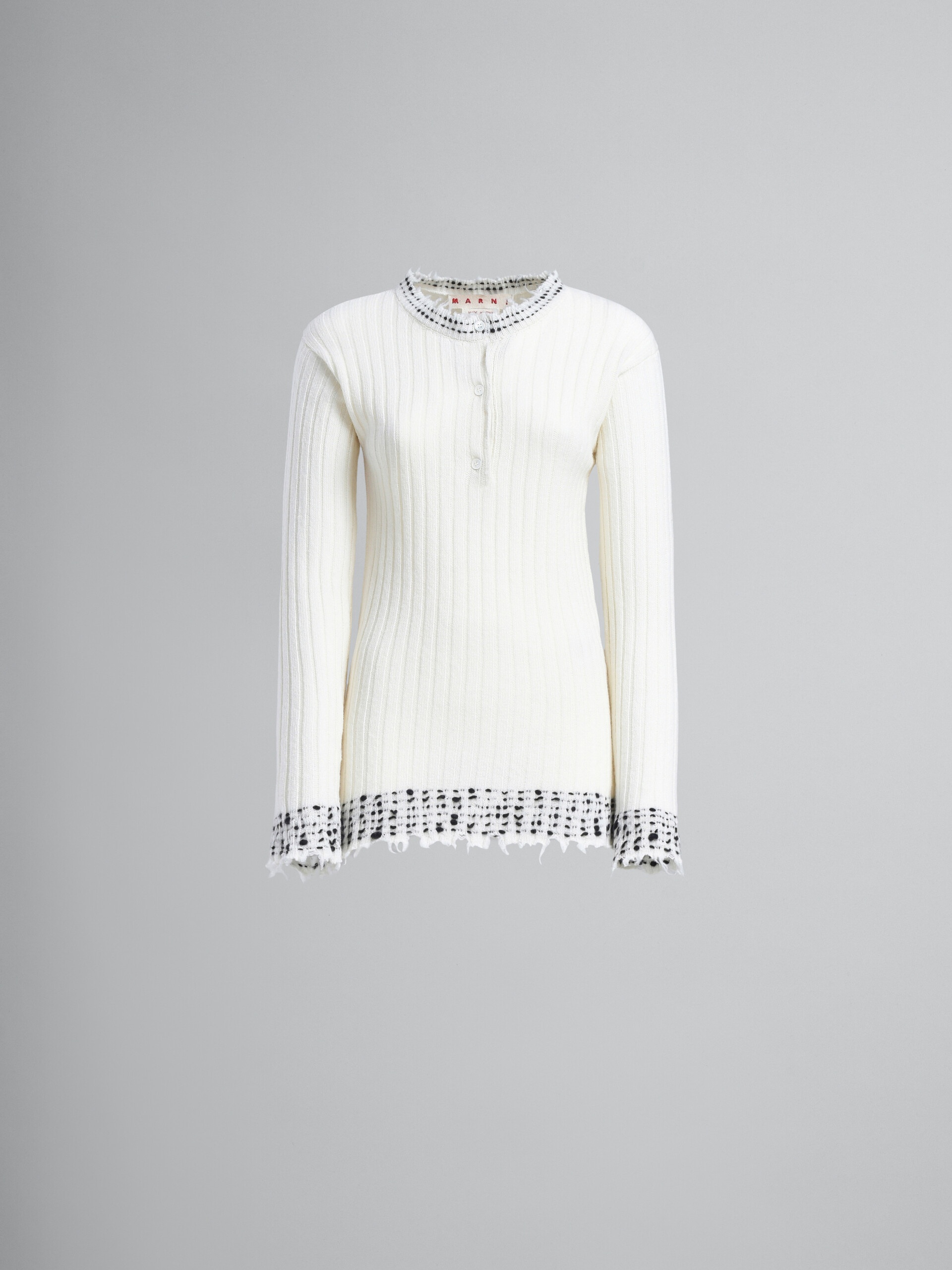 Long-sleeved sweater with Henley neckline. Ribbed texture. Regular fit. Hand embroidered collar, cuffs and hem. DETAILS COMPOSITION Primary Fabric: 100% Virgin Wool Knit - Application: 44% Acrylic Knit 34% Polyamide Knit 12% Wool Knit 10% Alpaca Knit