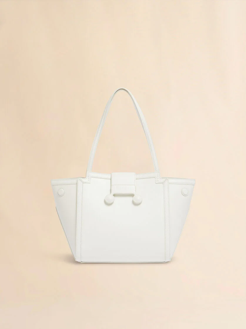 Mini Riviera bag made of smooth calf leather. Trapeze-shape with magnetic buttons on the sides. Leather trims and handles for hand or shoulder carry. Unlined interior with flat pocket. Magnetic leather closure with Marni lettering and two metal stud details. This product is made using leather from a Leather Working Group medalled tannery. LWG supports more responsible leather manufacturing across the globe. Made in Italy MODEL BMMP0152U0P819600W11 COMPOSITION Body: 100% Calf Leather - Lining: 100% Ovine Leather - Inside: 100% Calf Leather