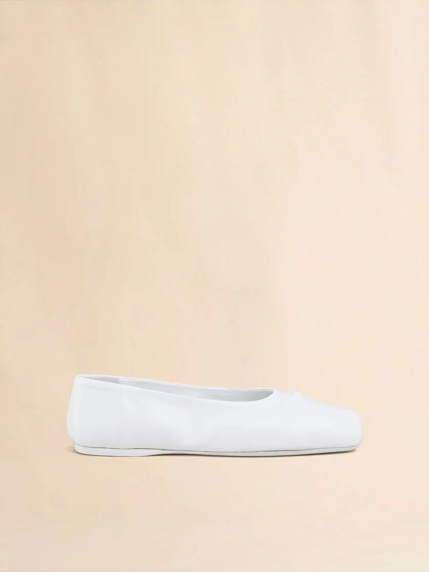 WHITE NAPPA LEATHER SEAMLESS LITTLE BOW BALLET FLAT