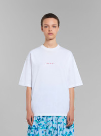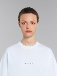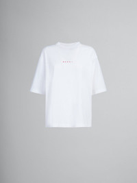 Crew-neck T-shirt made from organic cotton jersey. Loose fit with ribbed neck and slightly dropped sleeves. Small Marni logo printed on the chest. DETAILS COMPOSITION Primary Fabric: 100% Cotton Knit