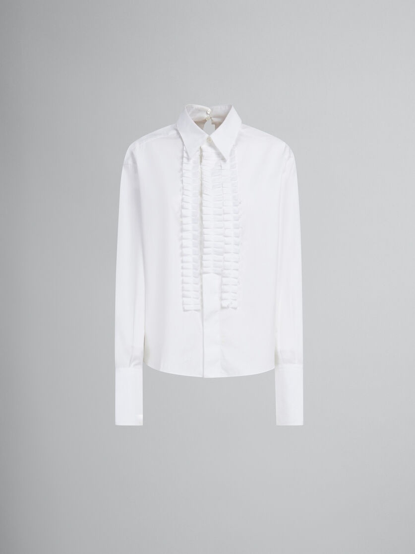 WHITE ORGANIC POPLIN SHIRT WITH RUFFLES