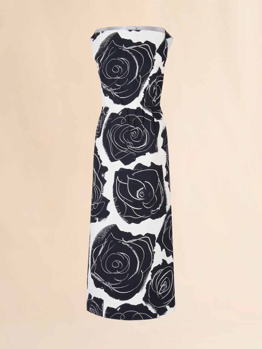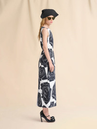 Long sleeveless dress made from bonded cotton poplin with a compact, weighty feel. A-line silhouette with boat neckline, shaped with darts on the bodice. Printed with this season's Cybele maxi rose pattern, created using a special scraping technique on wet paint. Back button closure. Made in Italy MODEL ABMA1420R0UTC536CYW01 COMPOSITION Primary Fabric: 100% Cotton Knit - Secondary Fabric: 100% Cotton Woven