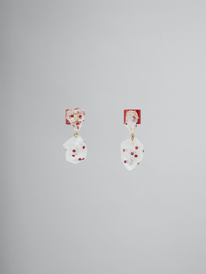 Stud drop earrings crafted from hand-cut white quartz stones, embellished with red rhinestones that replicate this season's polka-dot pattern. Marni logo butterfly backs. Each item is entirely unique and must be handled with care. Made in Italy. DETAILS COMPOSITION Primary Fabric: 80% Stone 15% Brass 5% Crystal