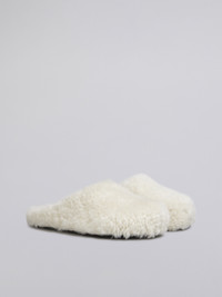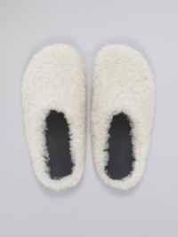 Soft curly sheepskin fur fussbett. Mule model. Iconic leather insole. Rubber sole. Made in Italy. DETAILS FIT Fits true to size. COMPOSITION Upper: 100% Lamb Fur - Lining: 100% Calf Leather - Inside: 100% Calf Leather - Sole: 100% Rubber CARE INSTRUCTION Do not wash. Do not bleach. Do not iron. Do not dry clean. Do not tumble dry. Do not professionally wet clean.