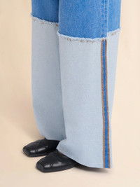 WIDE-LEG BLUE DENIM JEANS WITH EXTRA HIGH CUFFS