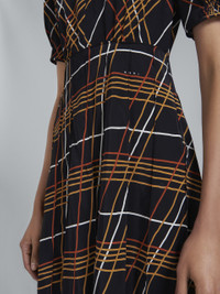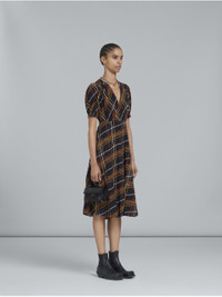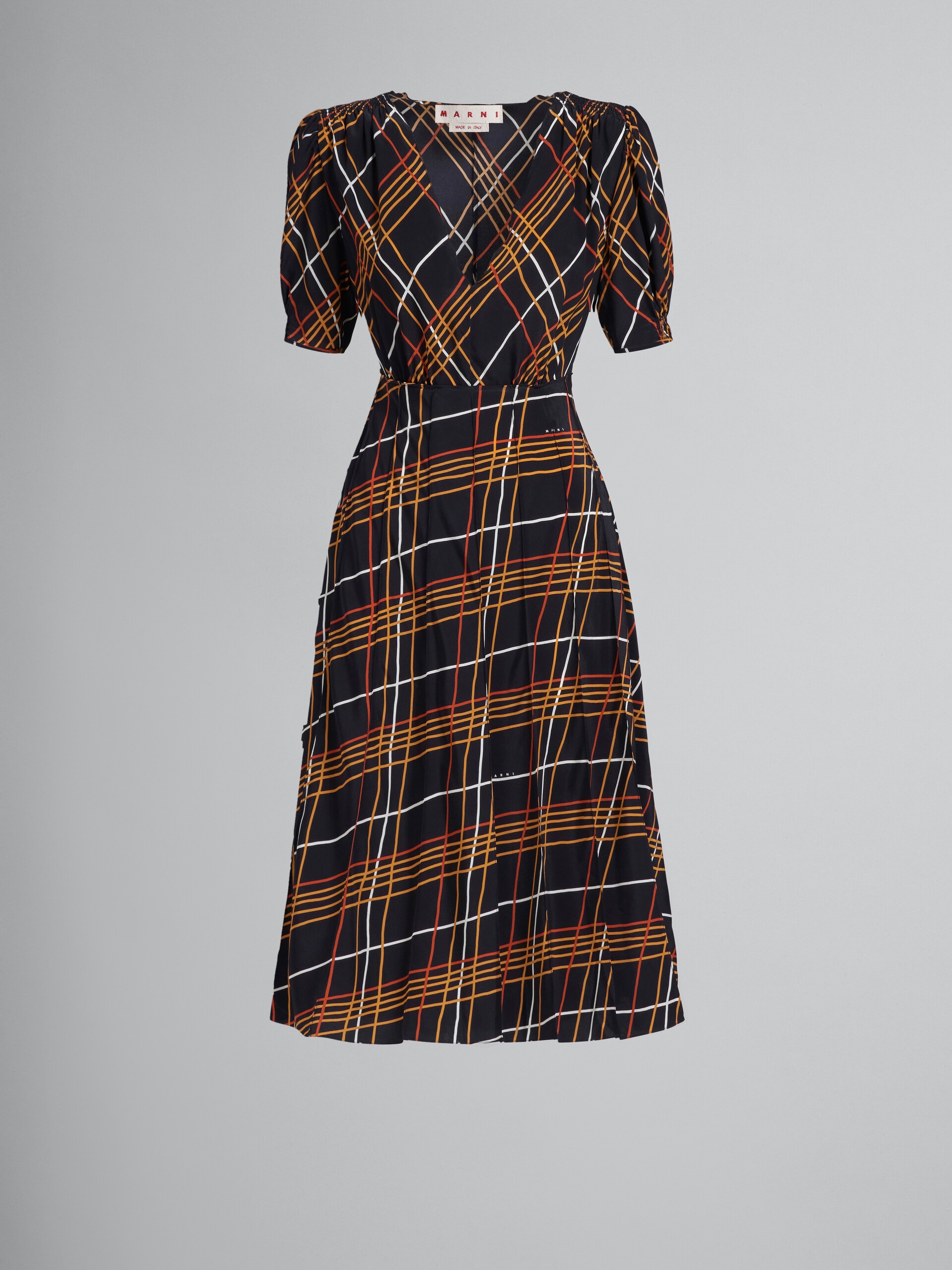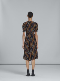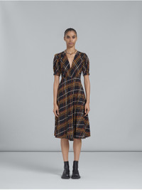 Midi dress with V neckline. Ruched elbow-length puff sleeves. The skirt features a pleated construction on the back. Wild Roads print with small Marni logo lettering. Hidden fastening. DETAILS COMPOSITION Primary Fabric: 100% Silk Woven