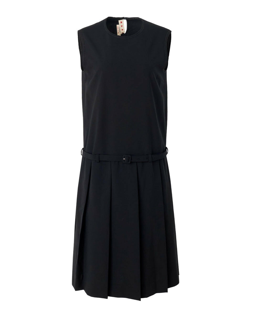 FINAL SALE The Mini Sleeveless Dress with Round Neckline in Black by Marni is a refined mini dress featuring a dropped waist with pleated skirt and belt loops. - Primary Fabric: 53% Polyester Woven 43% Virgin Wool Woven 4% Elastan Woven - Made in Italy