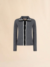 GRAY WOOL CARDIGAN WITH BICOLOR PLACKET