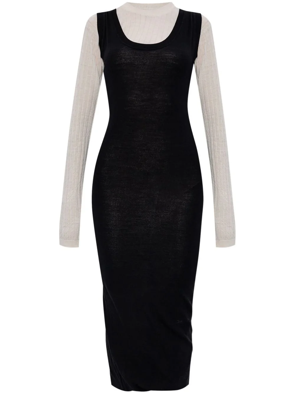 wool dress Highlights - Black - Wool - Ribbed knit - Crew neck - Long sleeves - Embroidered logo at the chest Made in Italy Composition Wool 100%