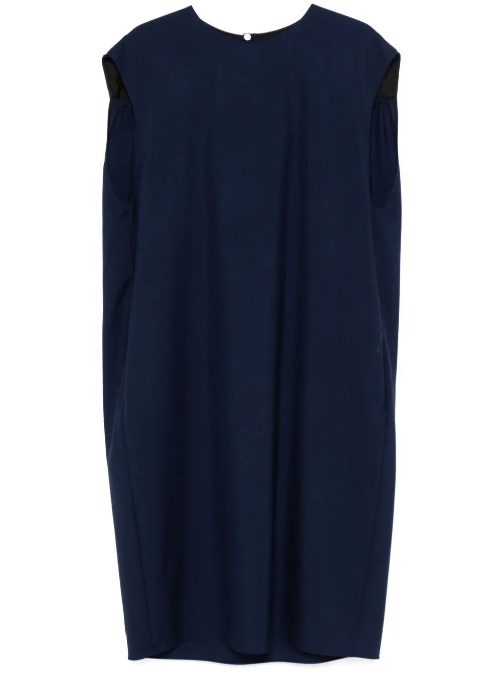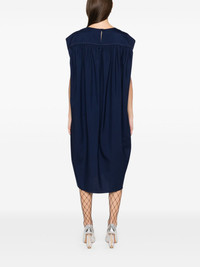 wool midi dress Highlights - Navy blue - Single rear button fastening - Slip pockets to the sides - Keyhole detail to the rear - Ruched detailing Made in Italy Composition Lining: Cupro 60%, Silk 40% Outer: Virgin Wool 100% SIZE & FIT Model measurements Height 5 ft 10 in(1.78 m) Bust/Chest 33.85 in(86 cm) Hips 36.61 in(93 cm) Waist 26.77 in(68 cm) FittingInformation Designed to be unstructured, offering a loose fit throughout Made from a midweight non-stretch fabric