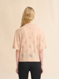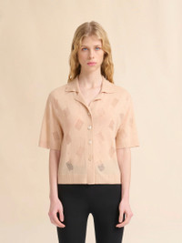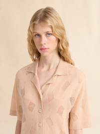 PALE PEACH WOOL-SILK KNIT OPENWORK SHIRT