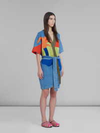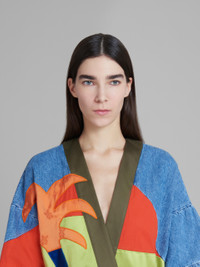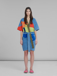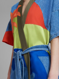 Marni x No Vacancy Inn short overcoat in lightweight stone-bleached chambray. Embroidered with multicolour patches. Wrapped silhouette with relaxed elbow-length sleeves and cotton-knit colour-block belt. Marni No Vacancy Inn logo embroidered on the sleeve. Made in Italy. DETAILS FIT The model is 178 cm tall. The model is wearing size 40 IT. COMPOSITION Primary Fabric: 100% Cotton Woven - Secondary Fabric: 100% Cotton Woven - Third Fabric: 65% Polyester Woven 35% Cotton Woven - Fourth Fabric: 56% Viscose-Rayon Woven 44% Cotton Woven - Application: 100% Viscose-Rayon Woven - Application: 77% Cotton Woven 23% Linen Woven - Application: 100% Polyester Woven