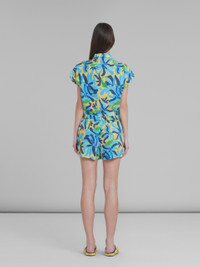 MARNI X NO VACANCY INN - LINEN AND VISCOSE SHORTS WITH CHIPPY FISHES PRINT