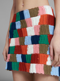 Marni x No Vacancy Inn miniskirt in a color-block cotton knit. Hidden zip fastening on the back. Made in Italy. DETAILS FIT The model is 178 cm tall. The model is wearing size 40 IT. COMPOSITION Primary Fabric: 100% Cotton Knit