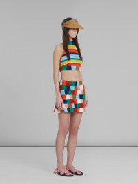 Marni x No Vacancy Inn halterneck top in a color-block cotton knit. Cropped silhouette with an open back, tied at the neck. Made in Italy. DETAILS FIT The model is 178 cm tall. The model is wearing size 40 IT. COMPOSITION Primary Fabric: 100% Cotton Knit