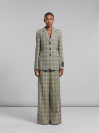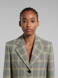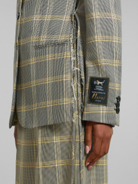 Single-breasted jacket made from technical with delicate checked pattern. Triple-button closure and notch lapels. Upper single-welt pocket and lower double-welt pockets. Finished with buttoned cuffs and a maxi logo patch on the sleeve. Lined. Made in Italy. DETAILS FIT The model is 5' 10''. The model is wearing size 40 IT. COMPOSITION Primary Fabric: 57% Virgin Wool Woven 43% Polyester Woven - Lining: 100% Viscose-Rayon - Sleeve Lining: 100% Cupro Woven