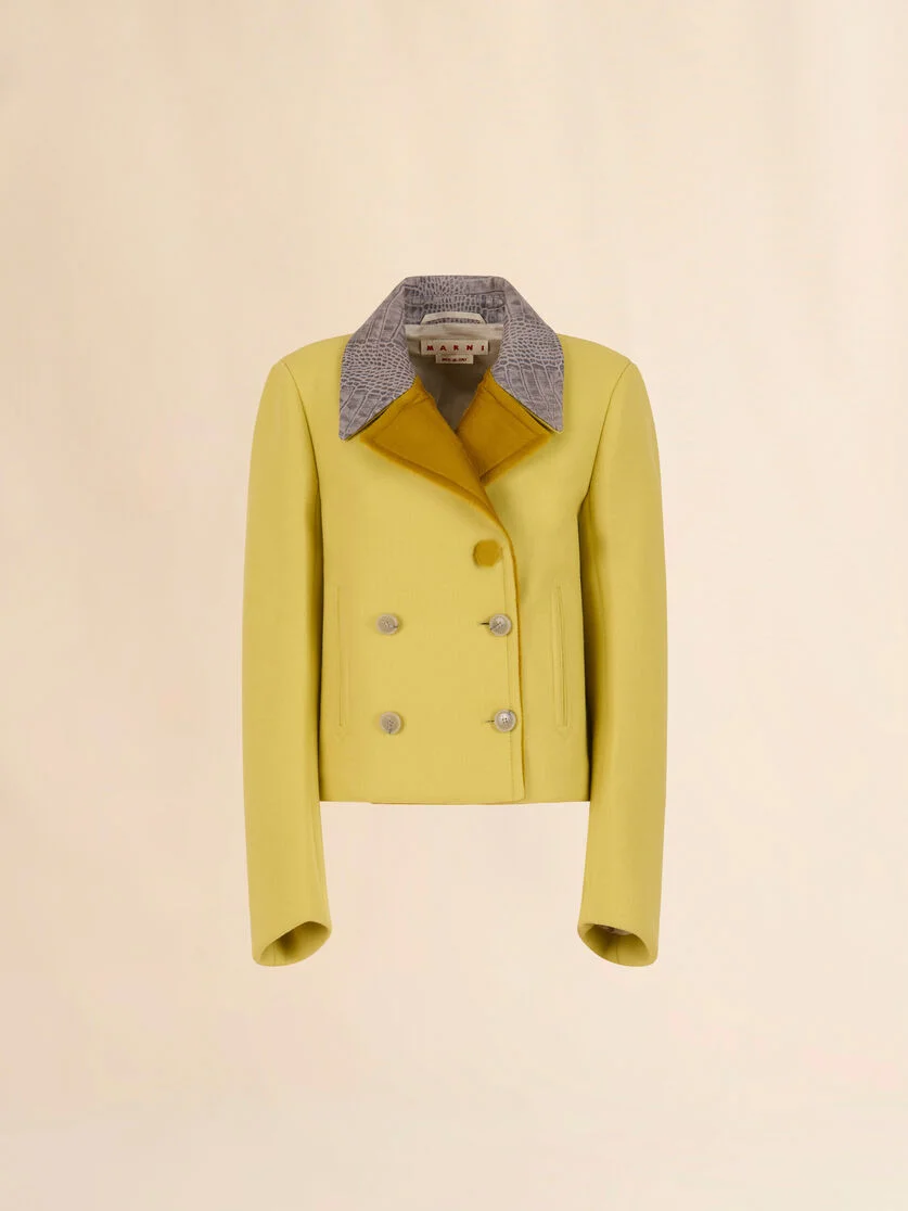 YELLOW WOOL FELT JACKET WITH LEATHER DETAILS