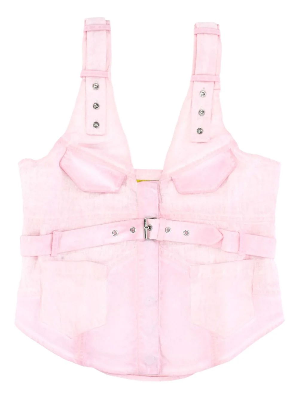 belted top Highlights - Light pink - Buckle fastening - Panelled design - Sleeveless Imported Composition Linen/Flax 100%, Cotton 98%, Elastane 2% Washing instructions Read Manufacturer Guidelines