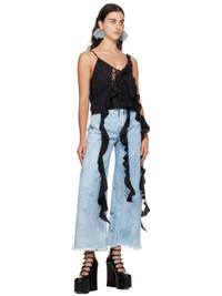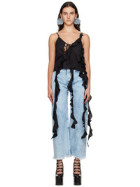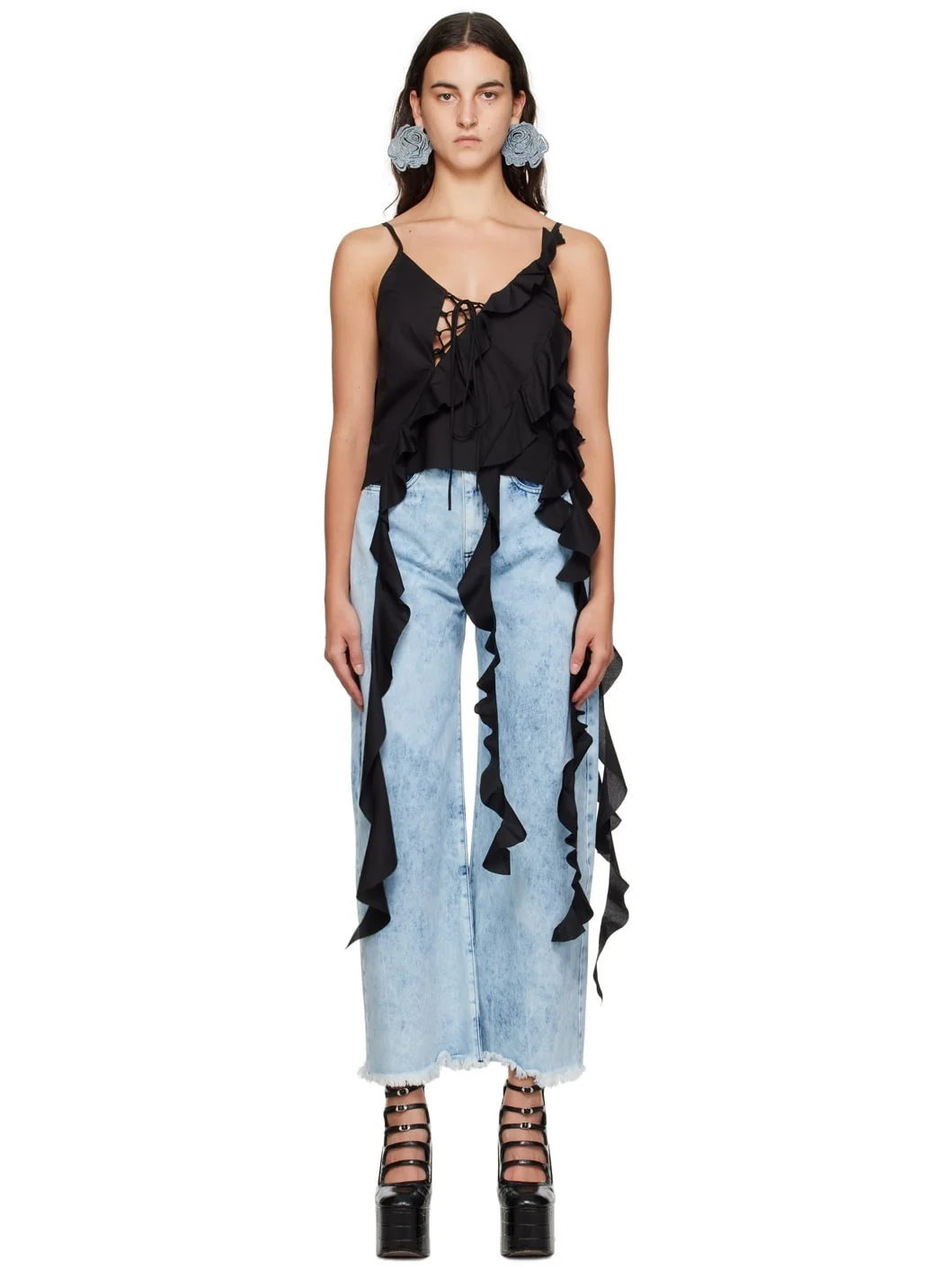 Cotton poplin tank top. Ruffled trim throughout. · Adjustable spaghetti straps · V-neck · Self-tie fastening at front · Extended trim at hem Supplier color: Black 100% cotton. Made in Portugal 232714F111001